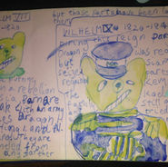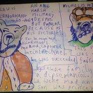 Thank you very much. I know much more than I did and feel I have made a good start in Indesingian history. King Hidvom is my favourite: I think he was rather like me (in character I mean: perhaps in appearance too). I was not at all surprised when BestarI went mad: I don’t hold with bears (or humans) who are always founding and inventing things. And can’t at all take Olav Funk’s view of this meddling monarch indeed I feel more friendly to poor Bestar II and his weakness for turtle soup (not that it is a soup I like very much myself, I would rather have a kidney or mushroom or even tomato). The best of these ancient portraits is that of the wily King Wilhelm IV. One can see the wiliness in his face.